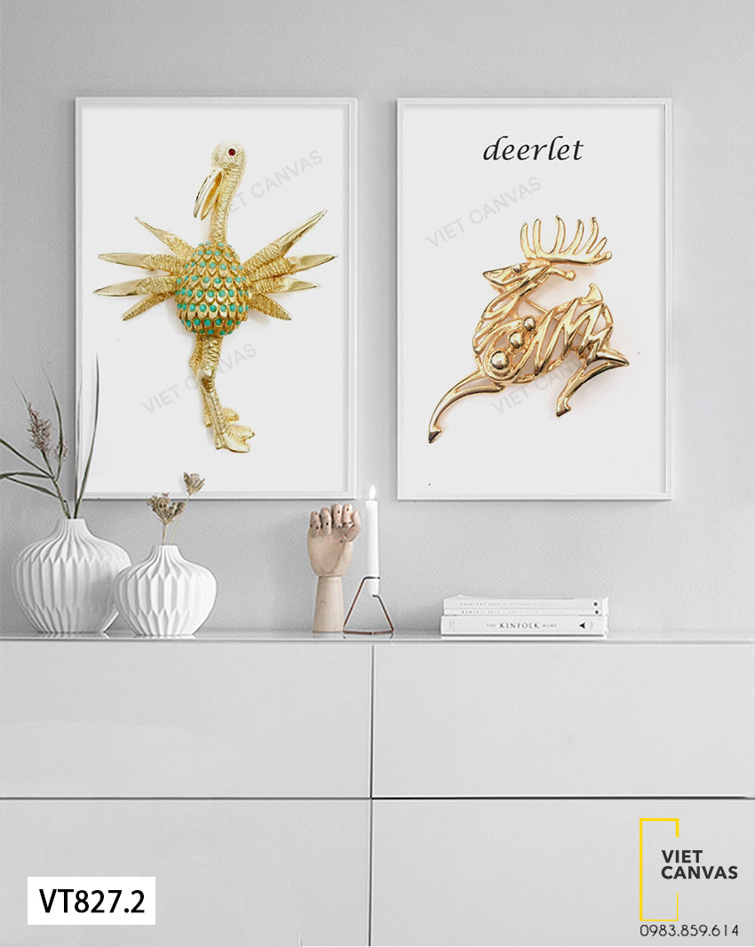 Bộ 2 Tranh Chim Hạc Và Hươu Vàng - VT827.2