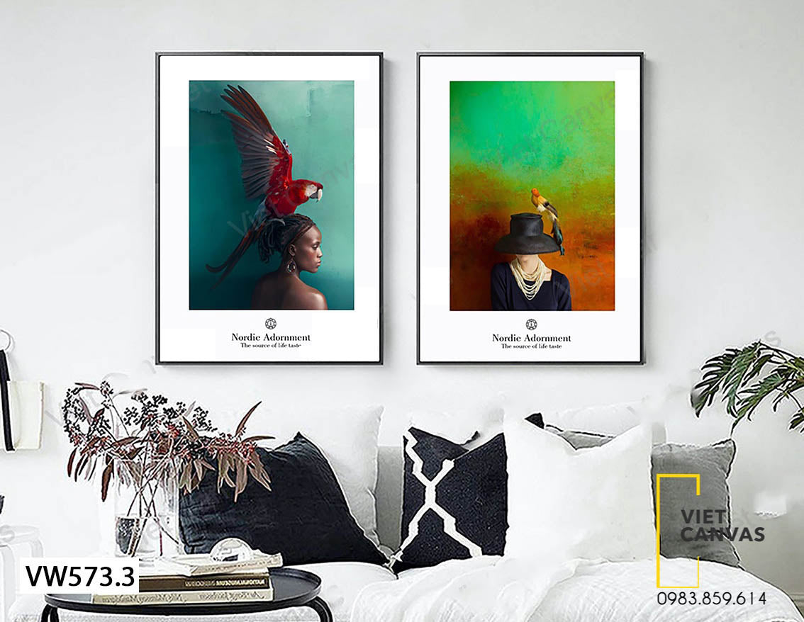 Bộ 2 Tranh Cô Gái Và Chim Vẹt - VW573.3