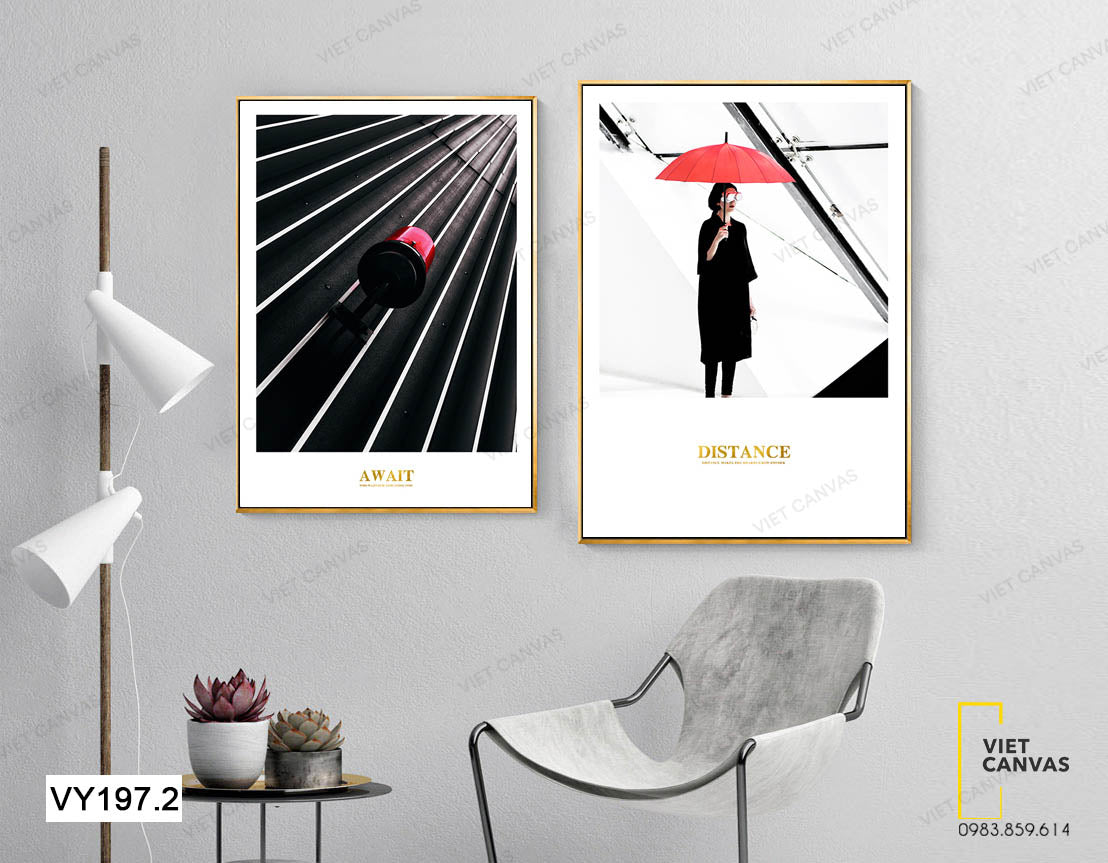 Bộ 2 Tranh Đèn Báo Trên Xe Và Cô Gái Cầm Ô - VY197.2