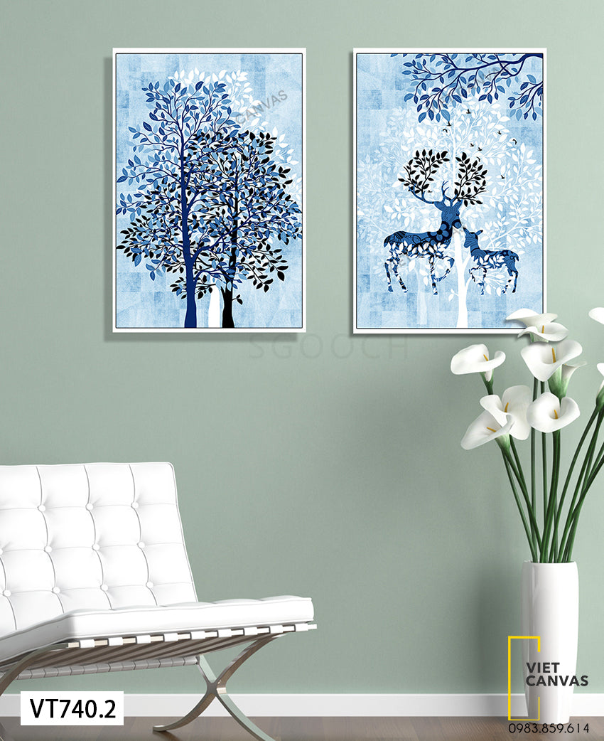 Bộ 2 Tranh Hươu Dưới Tán Cây - VT740.2