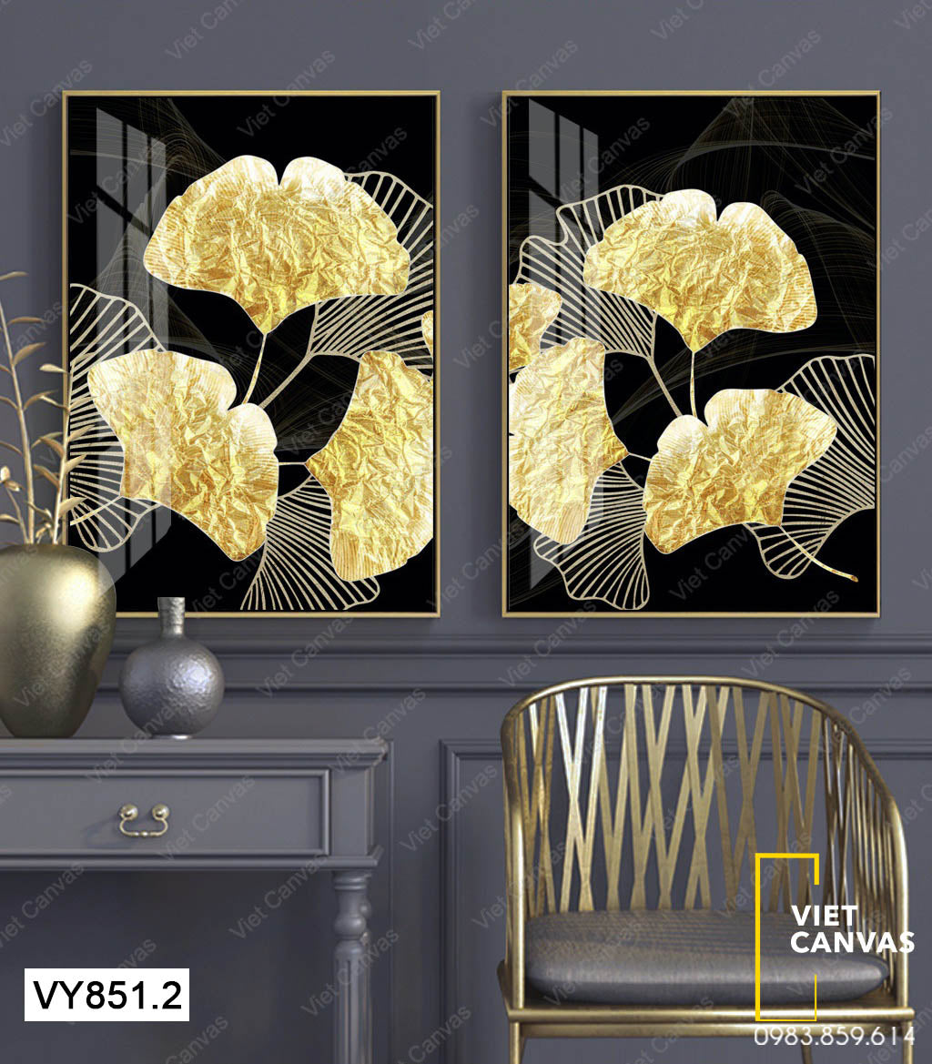 Bộ 2 Tranh Lá Bạch Quả Ánh Vàng Sang Trọng - VY851.2