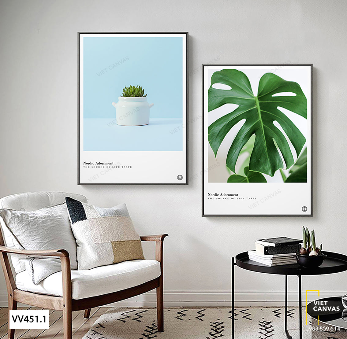 Bộ 2 Tranh Lá Cây Và Chậu Sen Đá - VV451.1