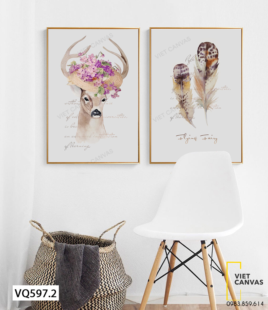 Bộ 2 Tranh Lông Vũ, Hươu Và Hoa - VQ597.2