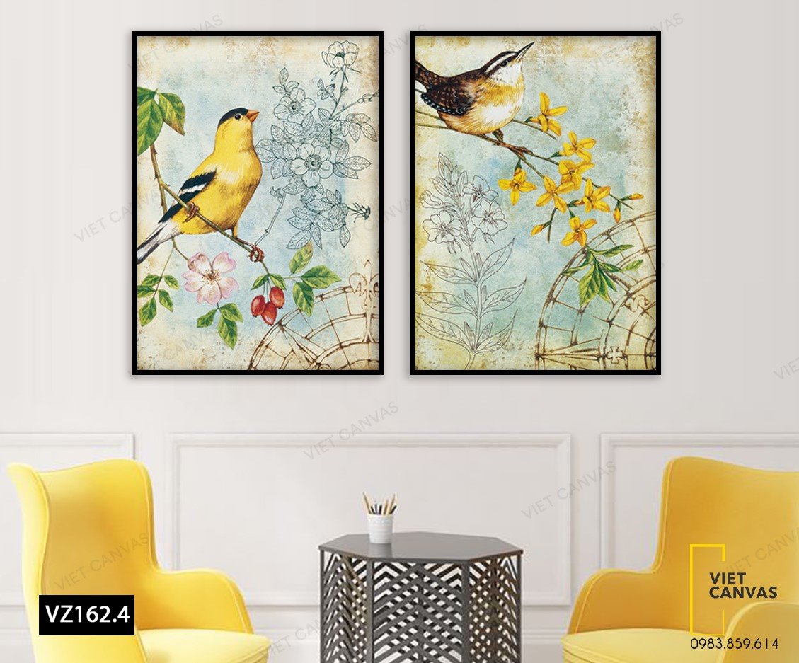 Bộ 2 Tranh Những Chú Chim Đậu Cành Hoa - VZ162.4