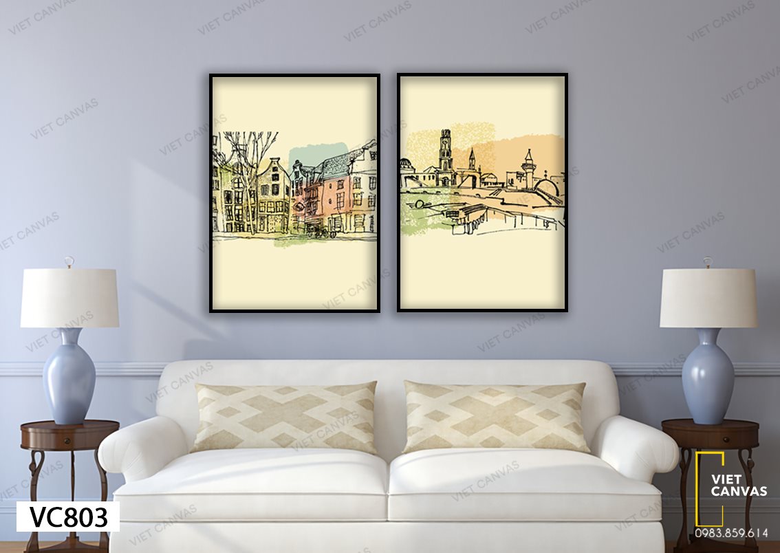 Bộ 2 Tranh Những Dãy Nhà Cao Tầng - VC803