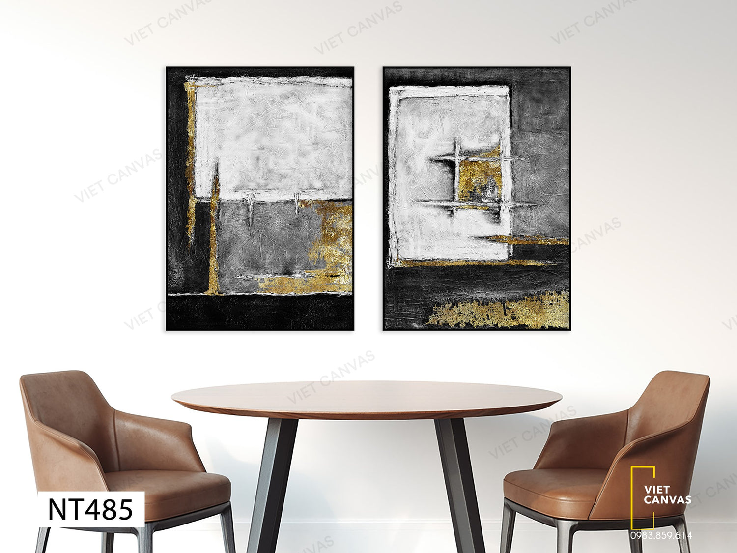 Bộ 2 Tranh Trừu Tượng Xám Vàng - NT485