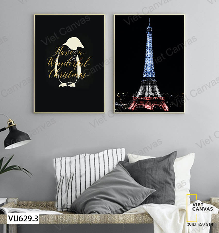 Bộ 2 Tranh Tháp Eiffel Và Chim Cánh Cụt - VU629.3