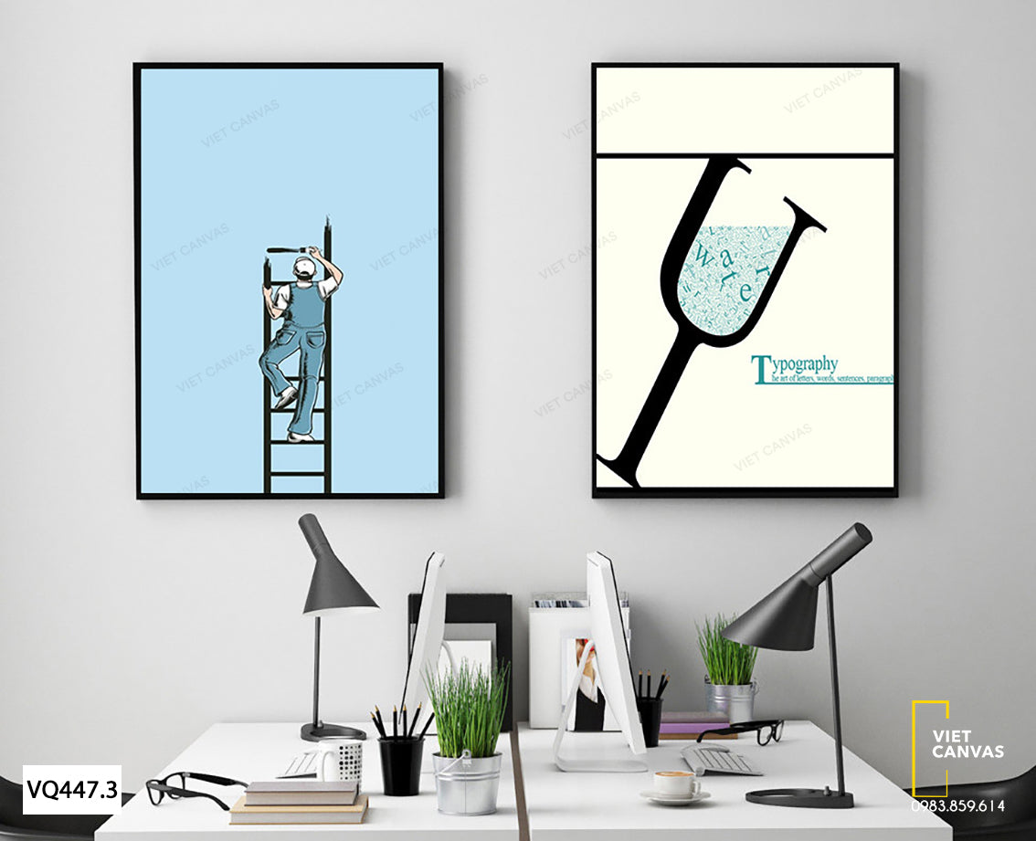 Bộ 2 Tranh Thợ Sơn Và Ly Nước - VQ447.3