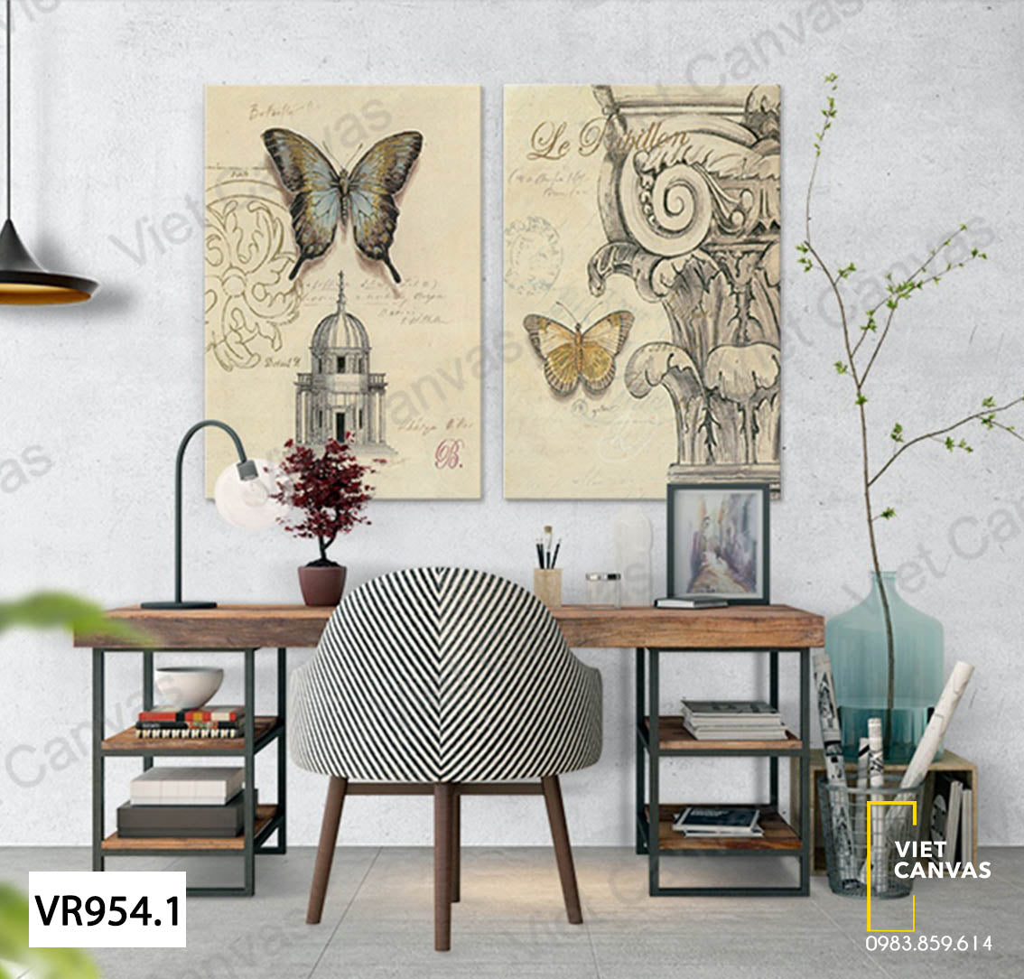 Bộ 2 Tranh Tòa Tháp Và Bươm Bướm - VR954.1