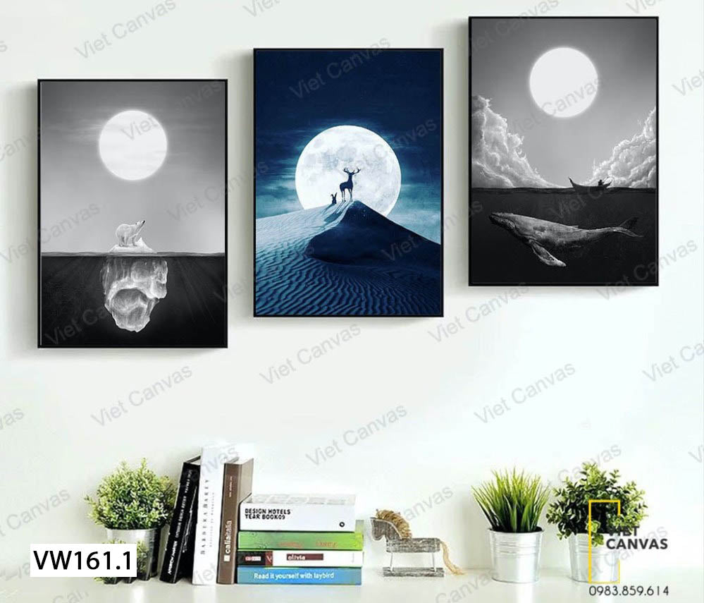 Bộ 3 Tranh Ánh Trăng Soi Sáng Biển Và Sa Mạc - VW161.1