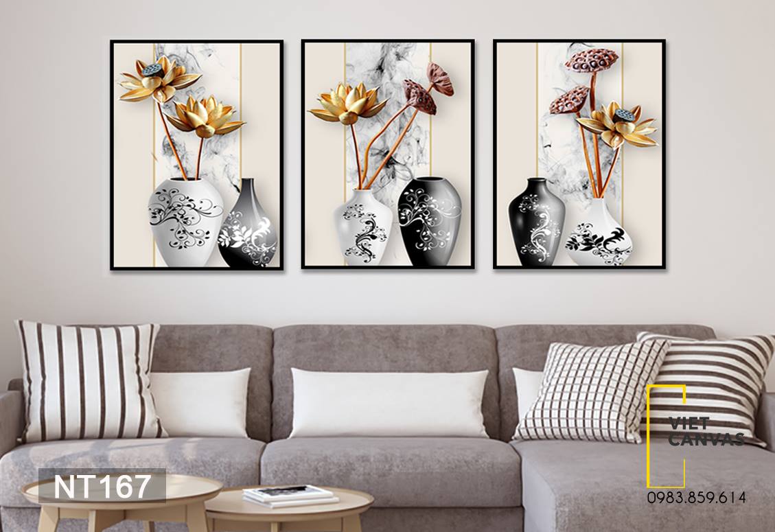 Bộ 3 Tranh Bình Hoa Sen Vàng - NT167