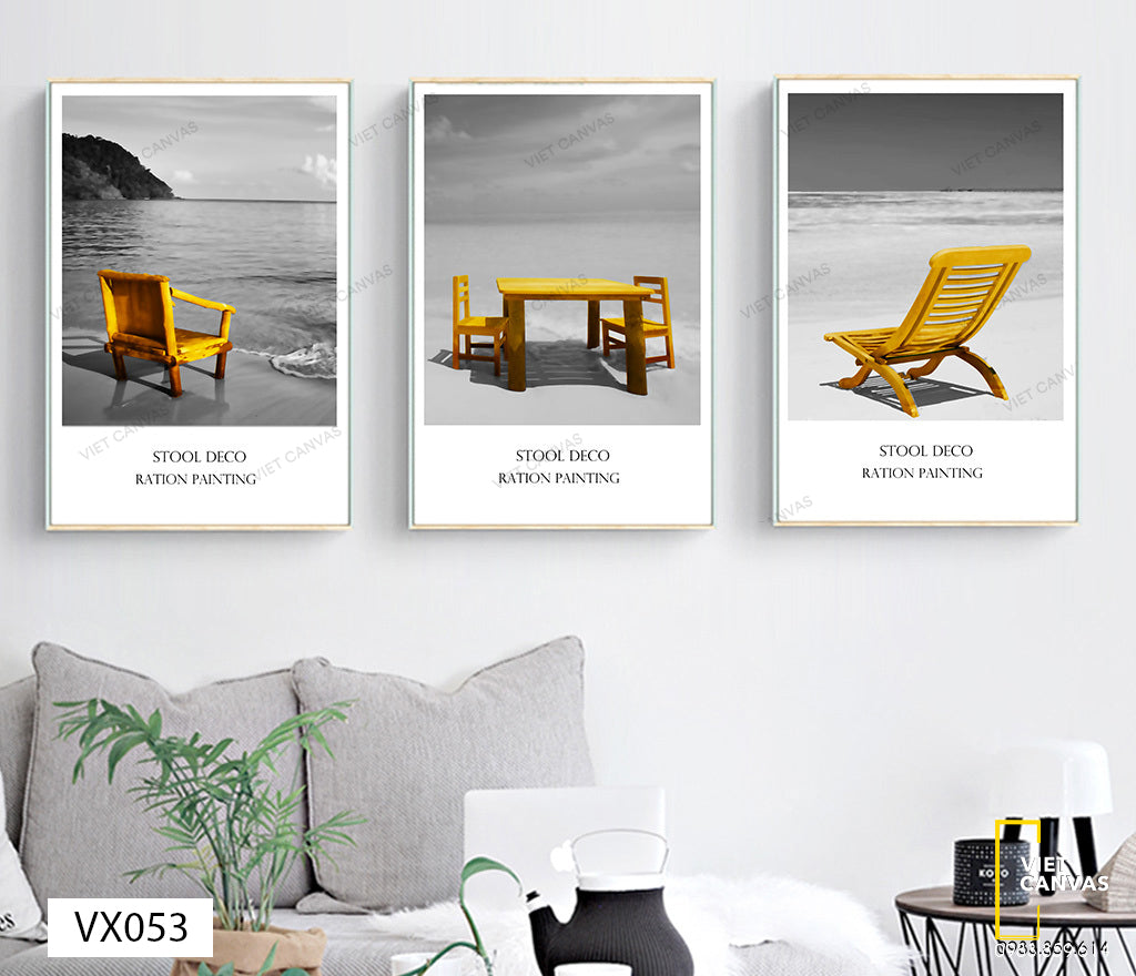 Bộ 3 Tranh Bộ Bàn Ghế Và Bãi Biển - VX053