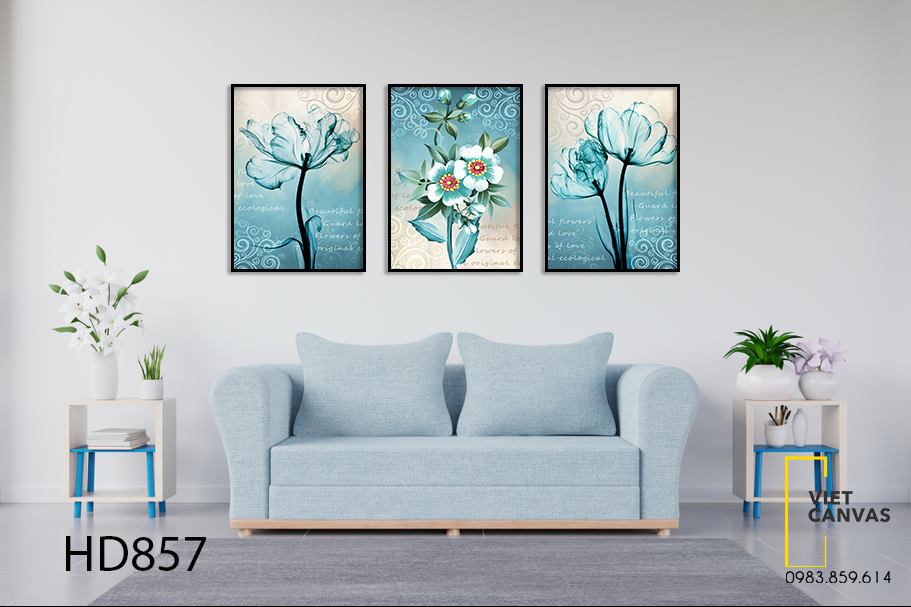 Bộ 3 Tranh Bông Hoa Xanh - HD857