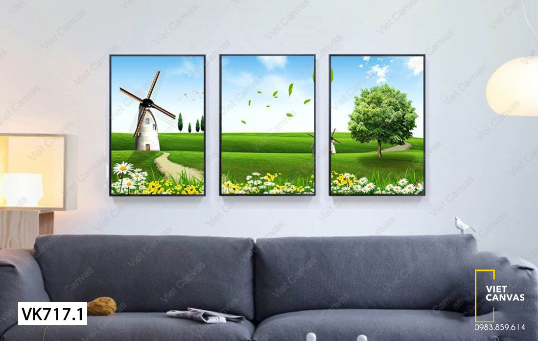 Bộ 3 Tranh Cánh Đồng Xanh Mát - VK717.1