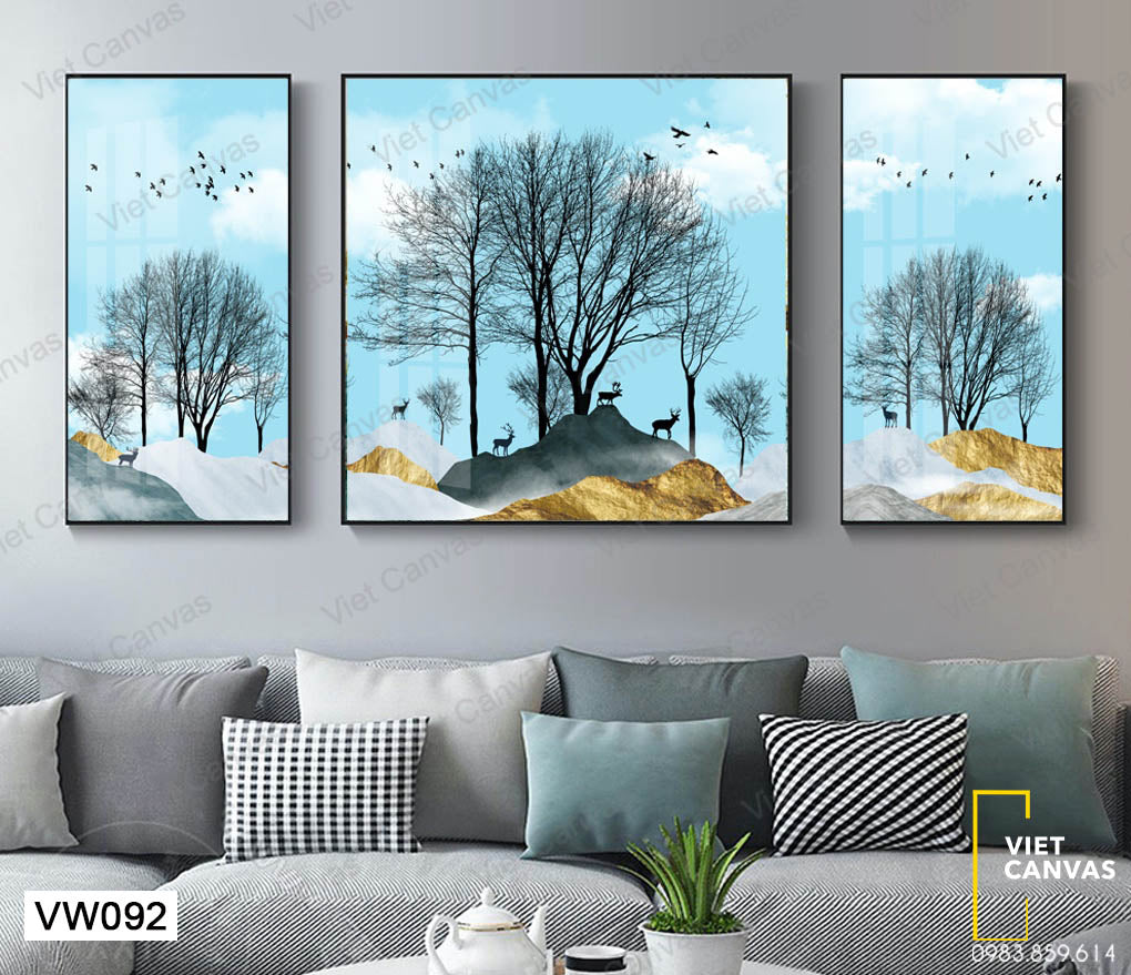 Bộ 3 Tranh Cây, Đàn Hươu Và Chim - VW092