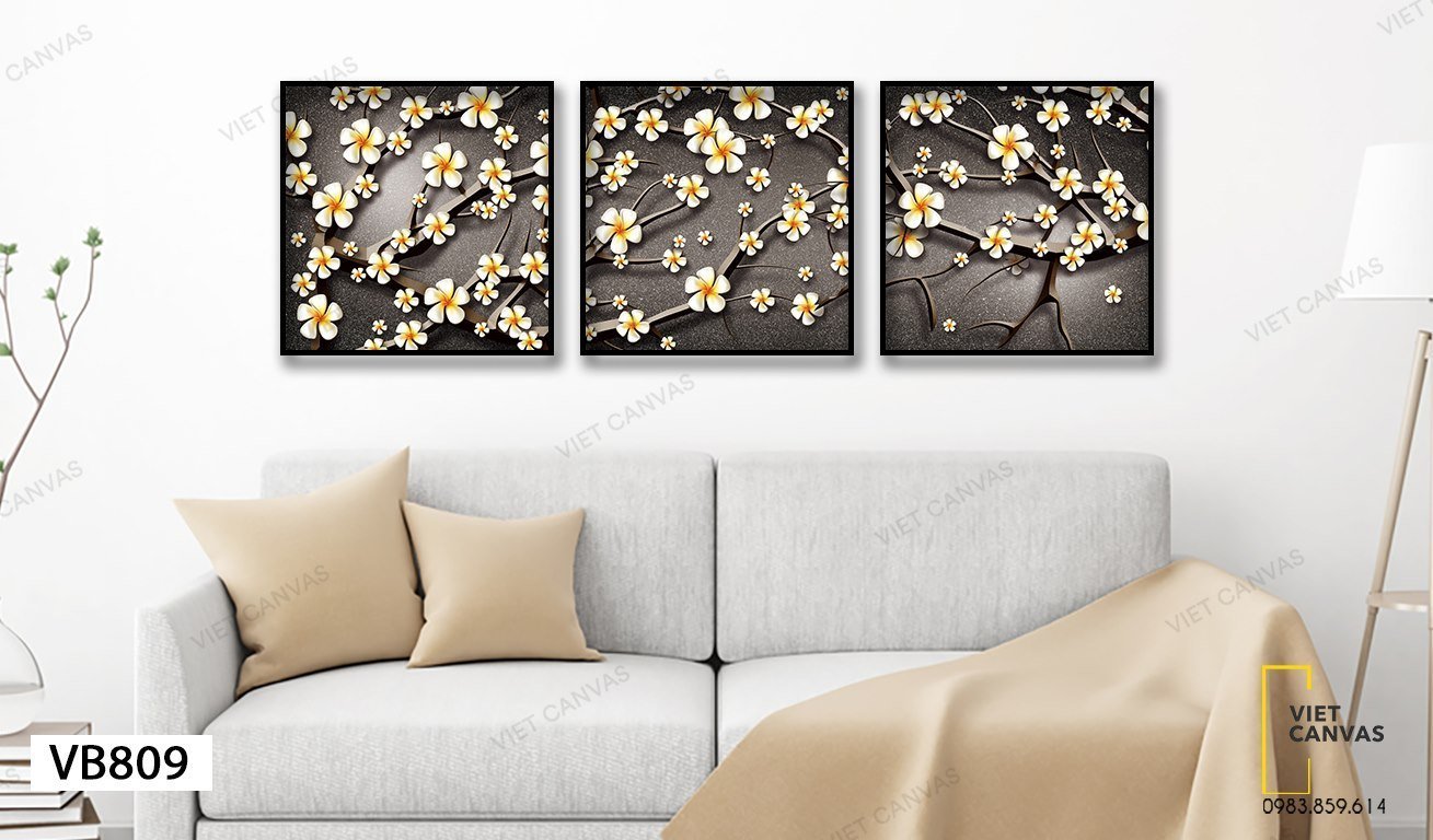 Bộ 3 Tranh Cây Hoa Sứ Trắng Sang Trọng - VB809
