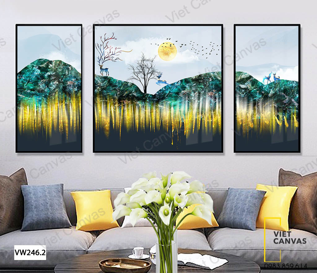 Bộ 3 Tranh Chú Hươu Trên Đồng Xanh - VW246.2