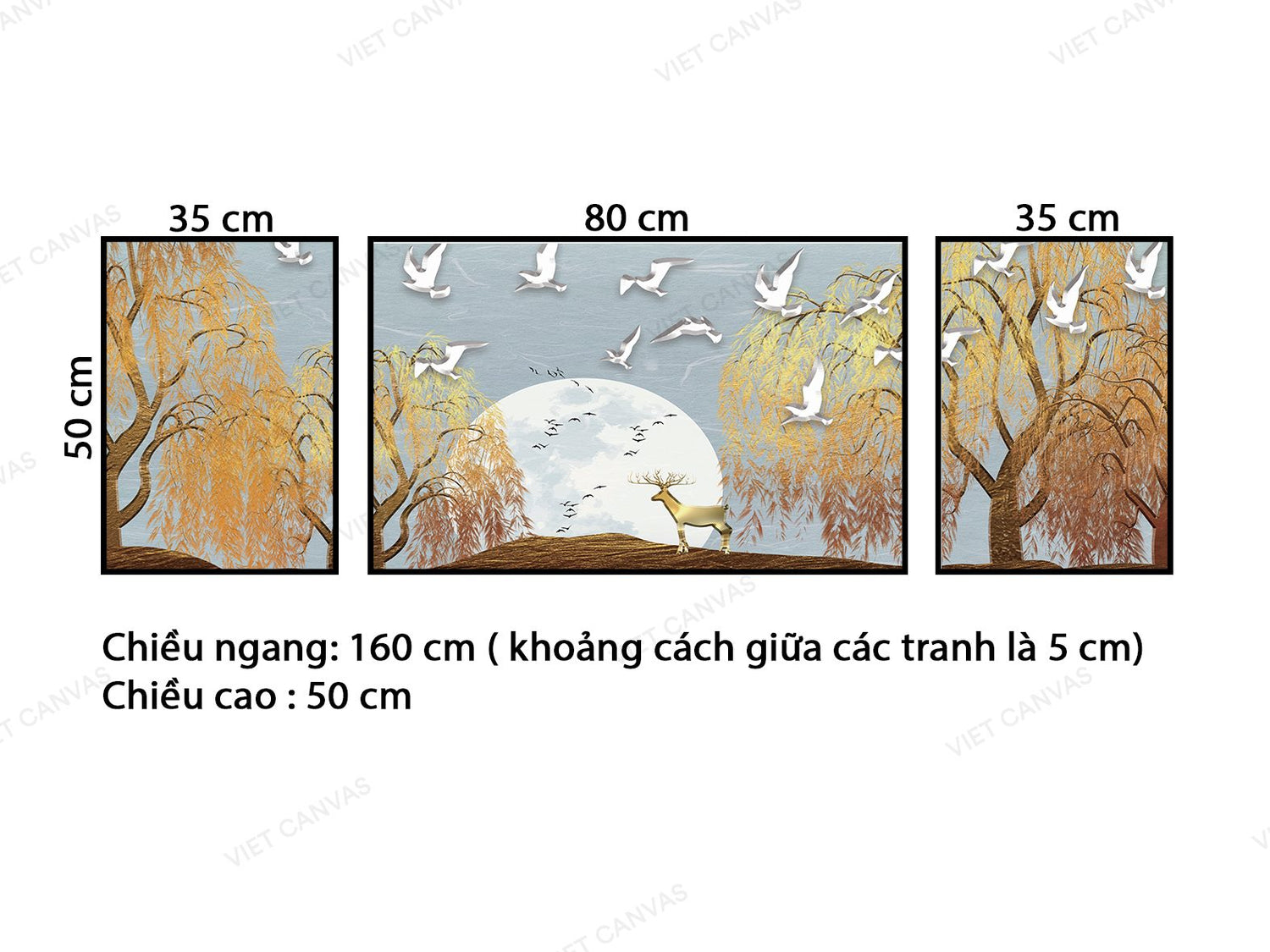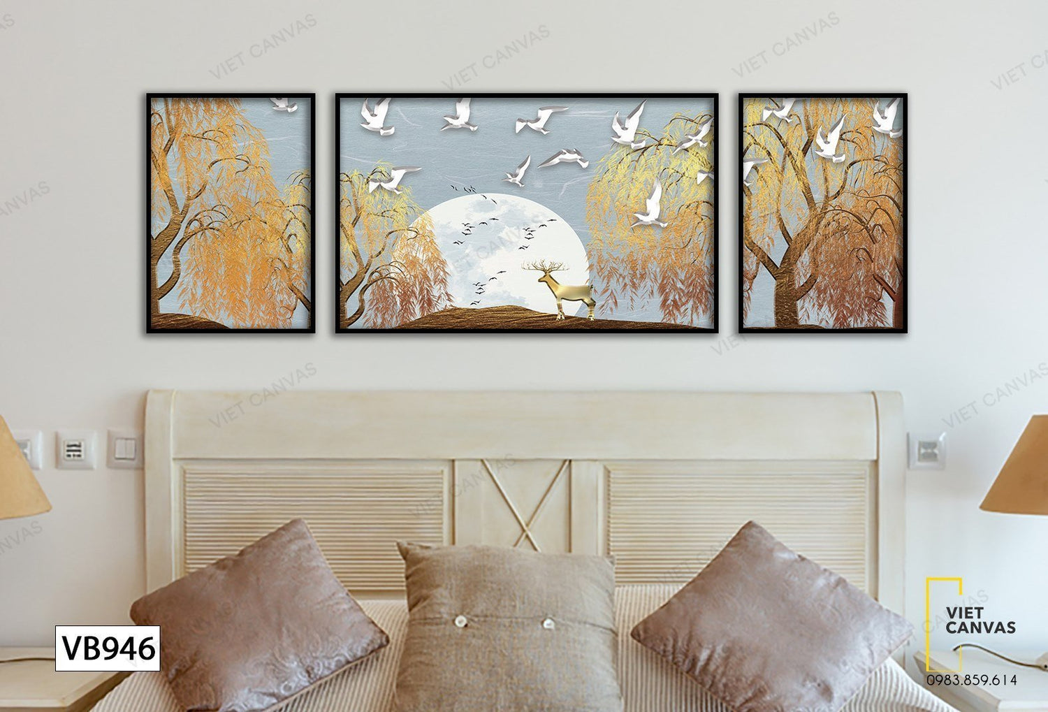 Bộ 3 Tranh Chú Nai Trong Rừng Liễu Rũ - VB946