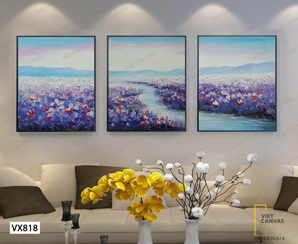 Bộ 3 Tranh Dòng Sông Và Vườn Hoa Tím - VX818