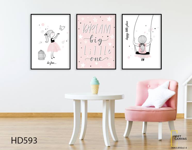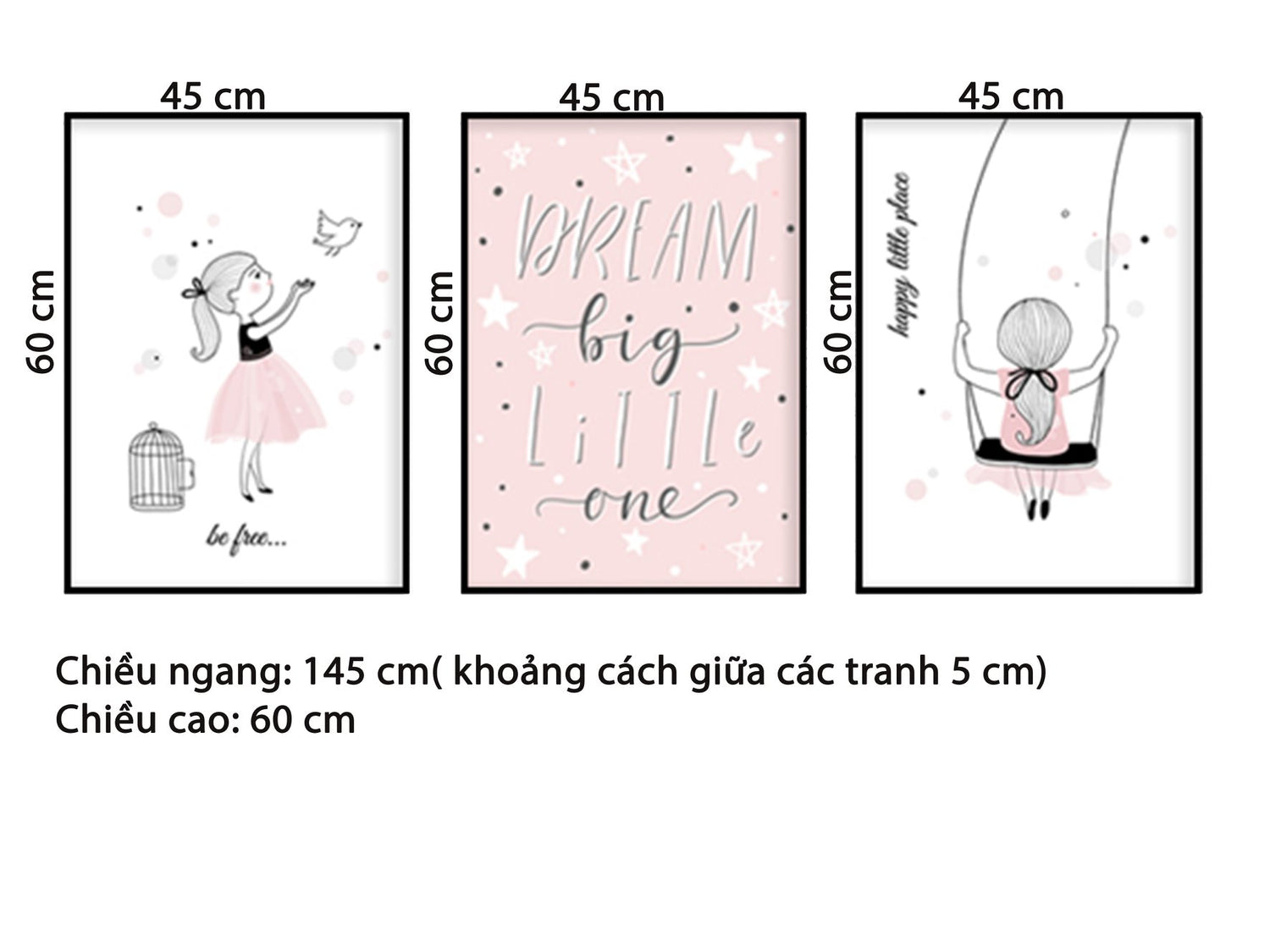 Bộ 3 Tranh Cô Gái Và Quotes Dream Big Little One - HD593