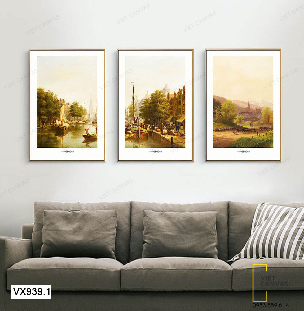 Bộ 3 Tranh Ghe Thuyền Và Vùng Quê Yên Bình - VX939.1
