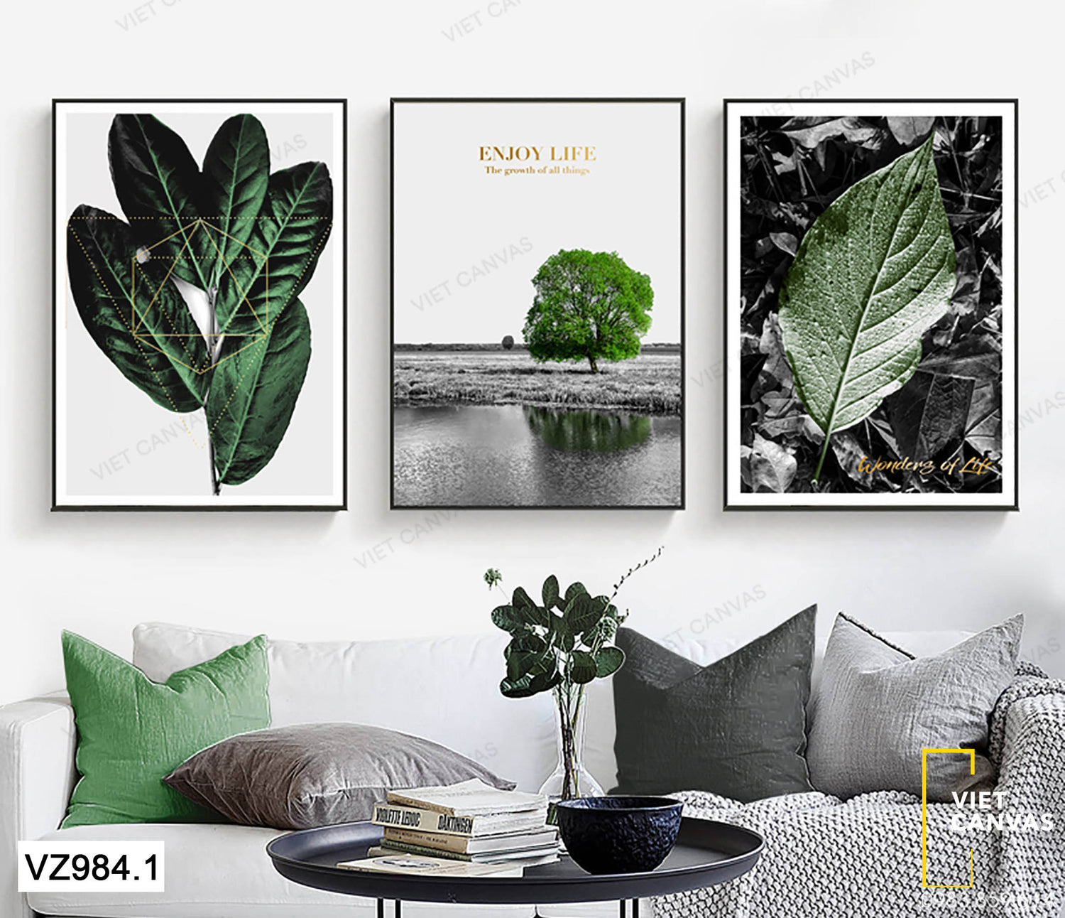 Bộ 3 Tranh Hồ Nước Và Cây Xanh - VZ984.1