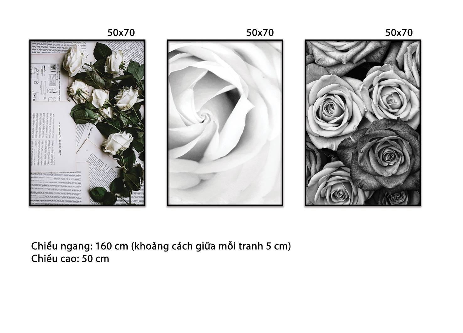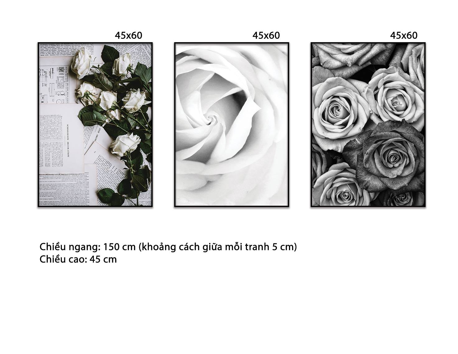 Bộ 3 Tranh Hoa Hồng Đen Trắng - HD290