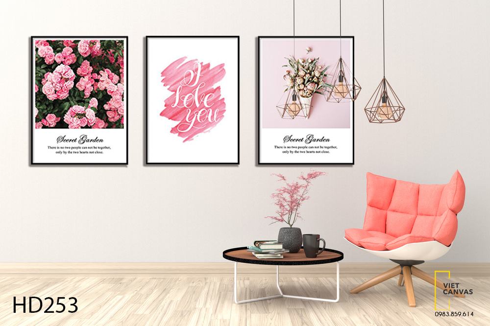 Bộ 3 Tranh Hoa Và Quotes I Love You - HD253