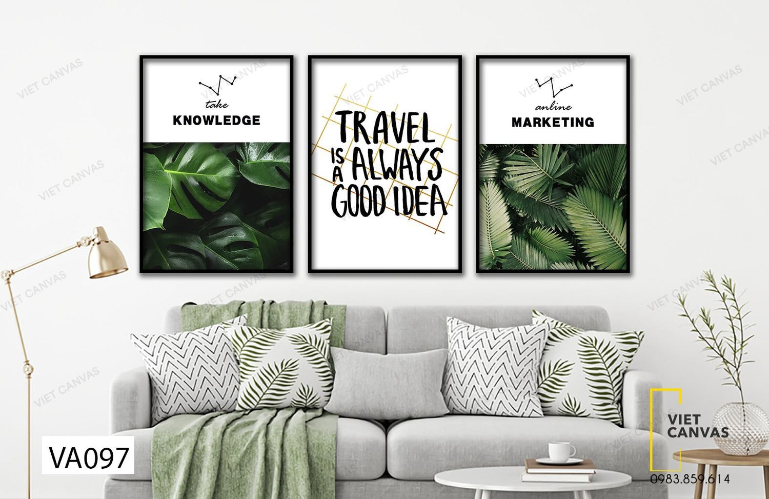 Bộ 3 Tranh Lá Cây Xanh Và Quotes - VA097
