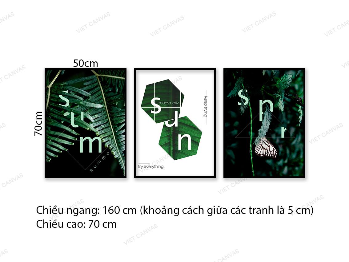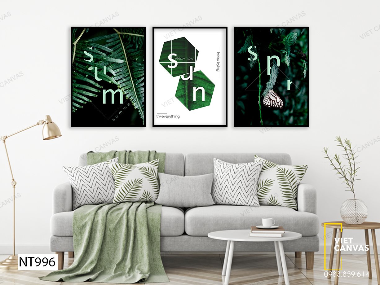 Bộ 3 Tranh Lá Cây Xanh Và Quotes - NT996