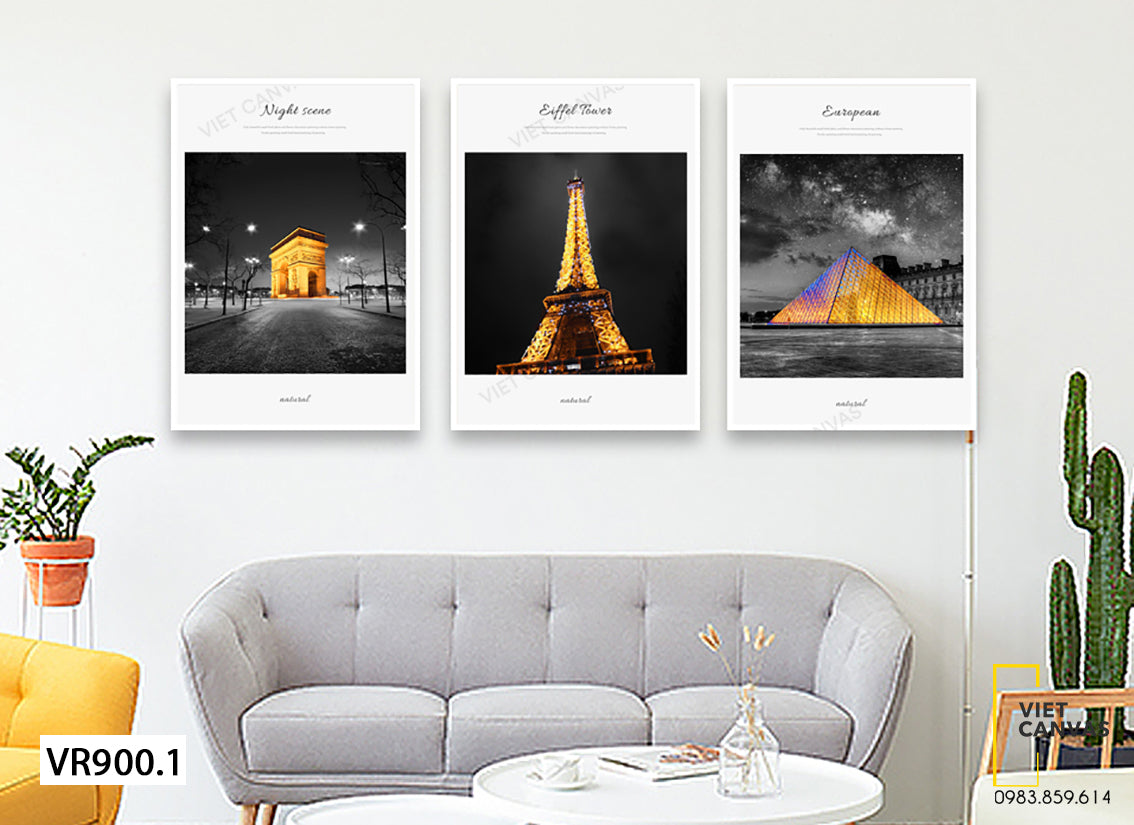 Bộ 3 Tranh Khải Hoàn Môn, Tháp Eiffel Và Kim Tự Tháp - VR900.1