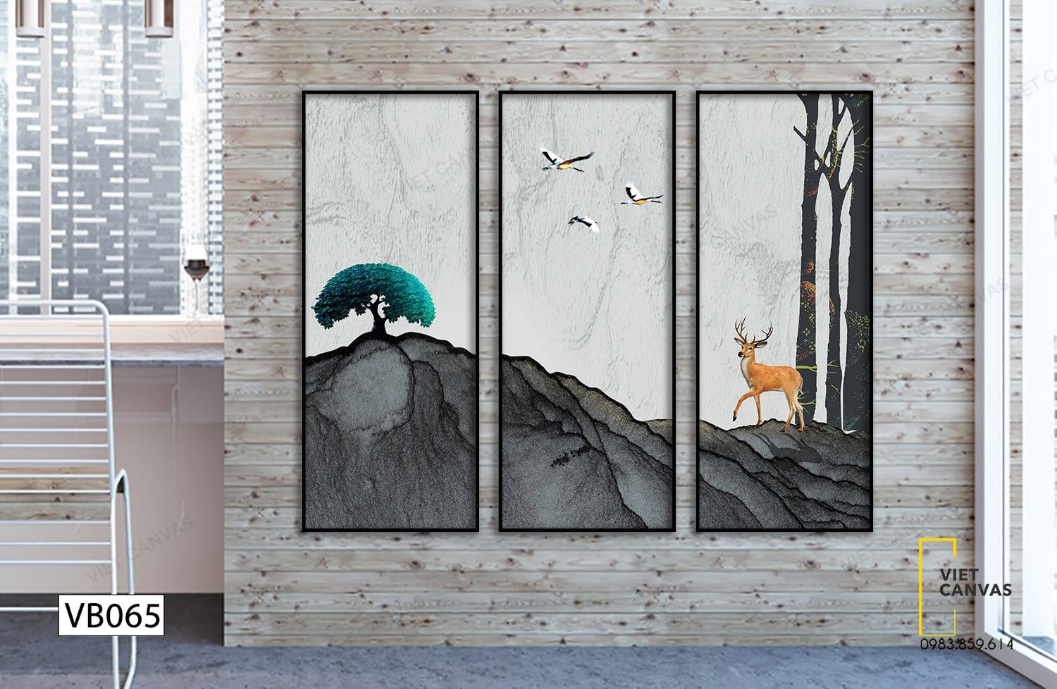 Bộ 3 Tranh Hươu Và Núi Đá - VB065