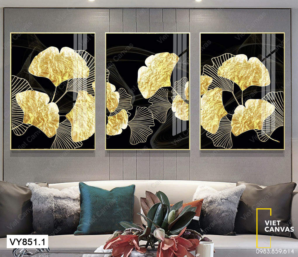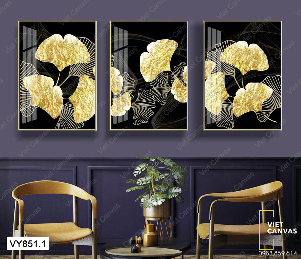 Bộ 3 Tranh Lá Bạch Quả Ánh Vàng Sang Trọng - VY851.1