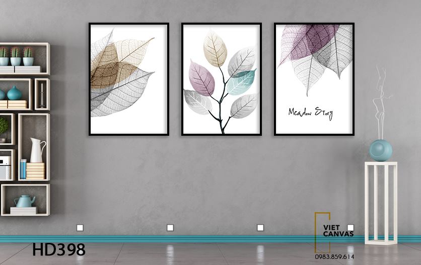 Bộ 3 Tranh Lá Bồ Đề Tím - HD398