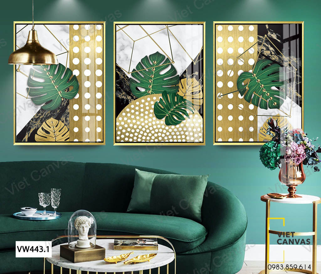 Bộ 3 Tranh Lá Cây Monstera - VW443.1