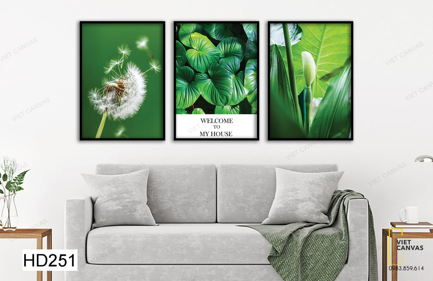 Bộ 3 Tranh Lá Cây Xanh Tươi Và Hoa Bồ Công Anh - HD251