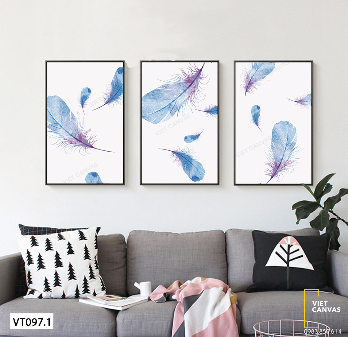 Bộ 3 Tranh Lông Vũ Tím - VT097.1