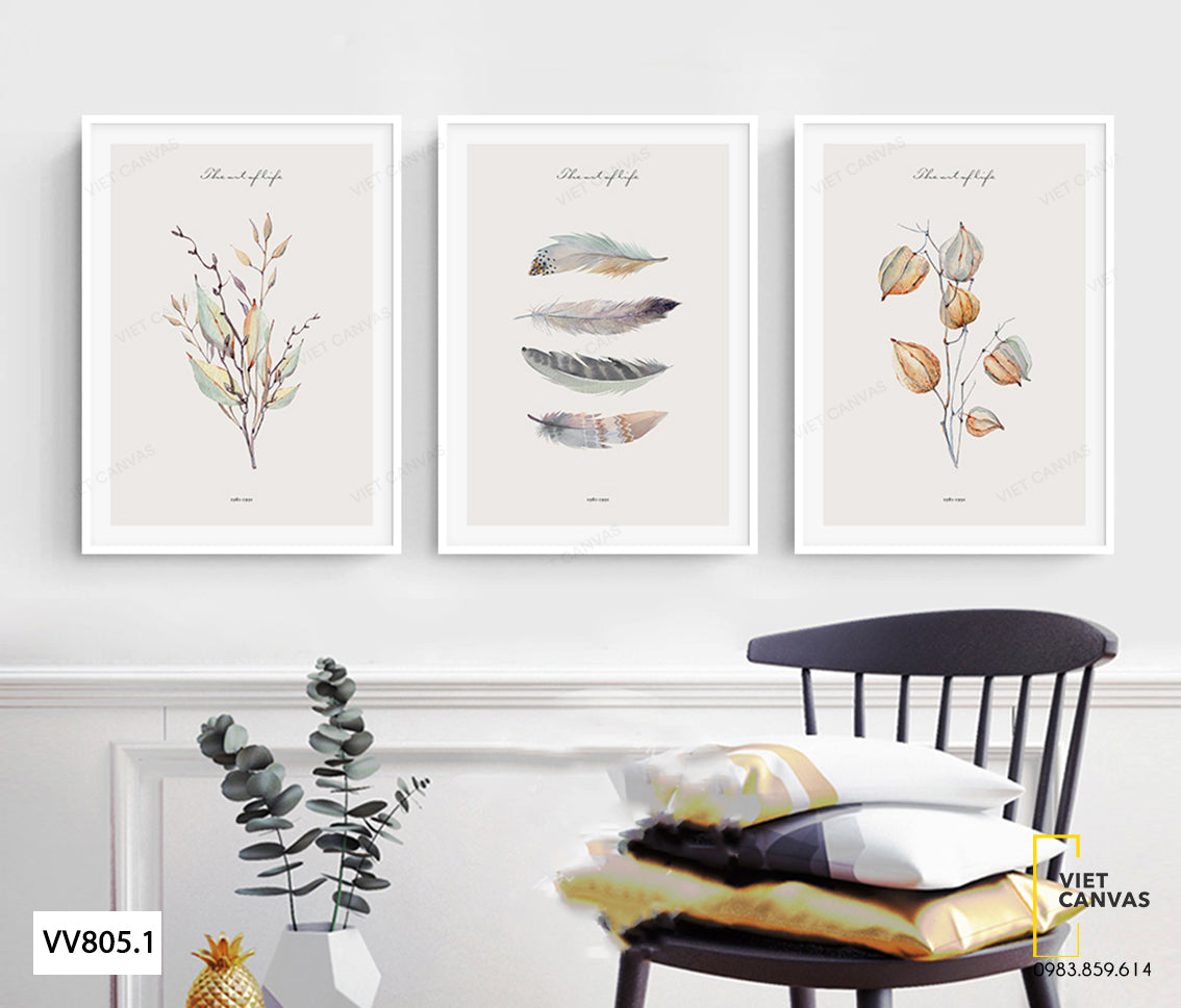 Bộ 3 Tranh Lông Vũ Và Cây Lá - VV805.1