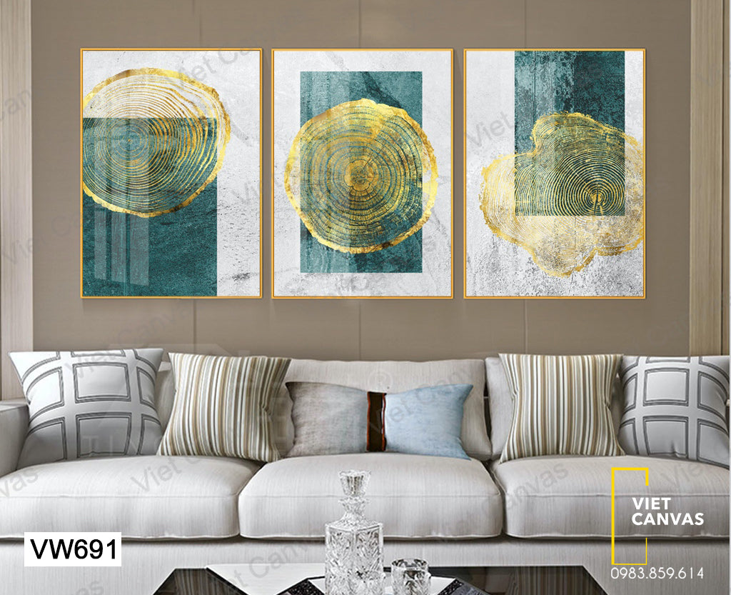 Bộ 3 Tranh Vân Gỗ Vàng - VW691