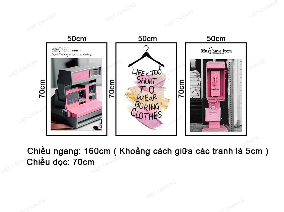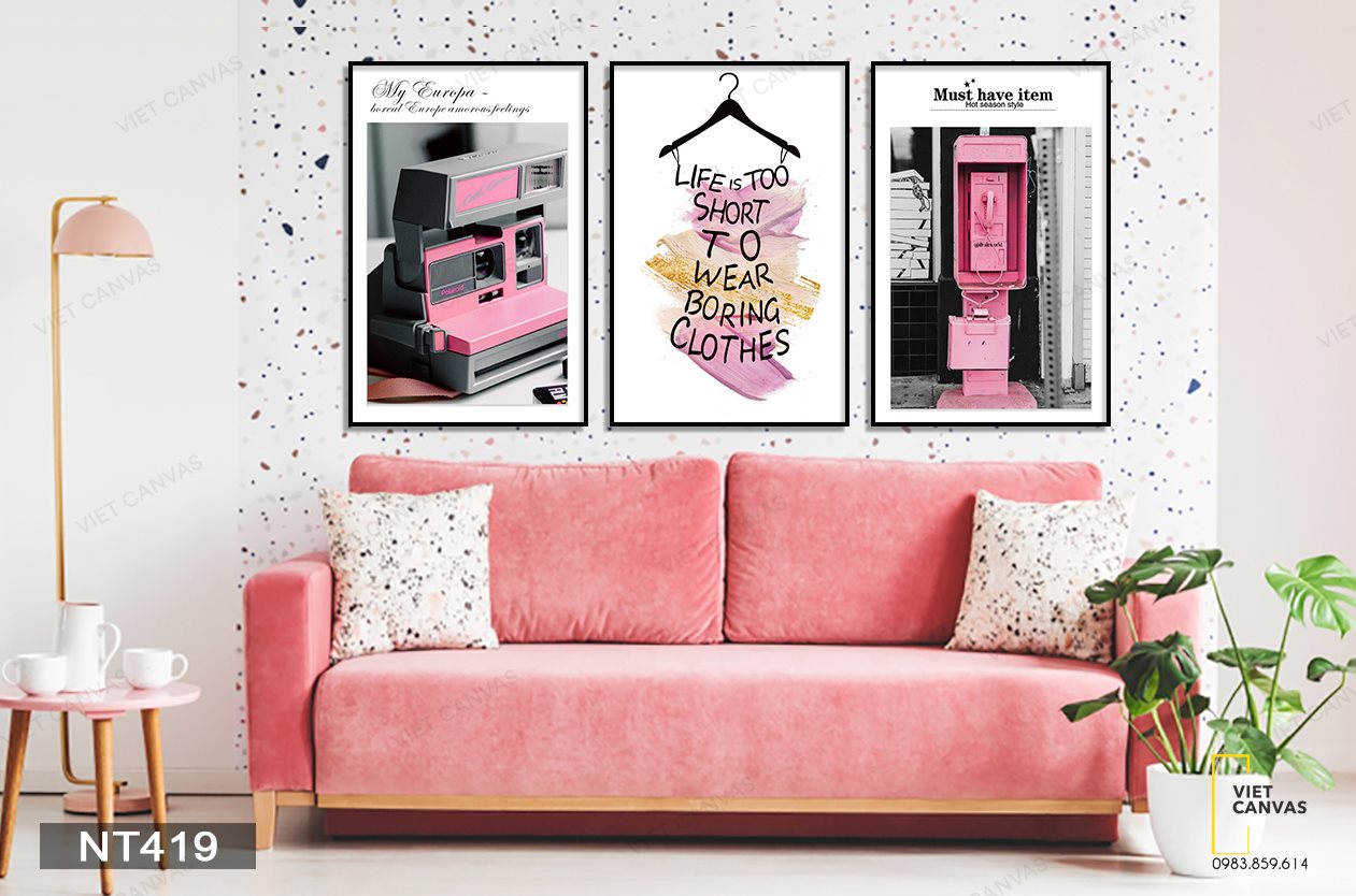Bộ 3 Tranh Máy Chụp Hình, Trạm Điện Thoại Và Quotes - NT419