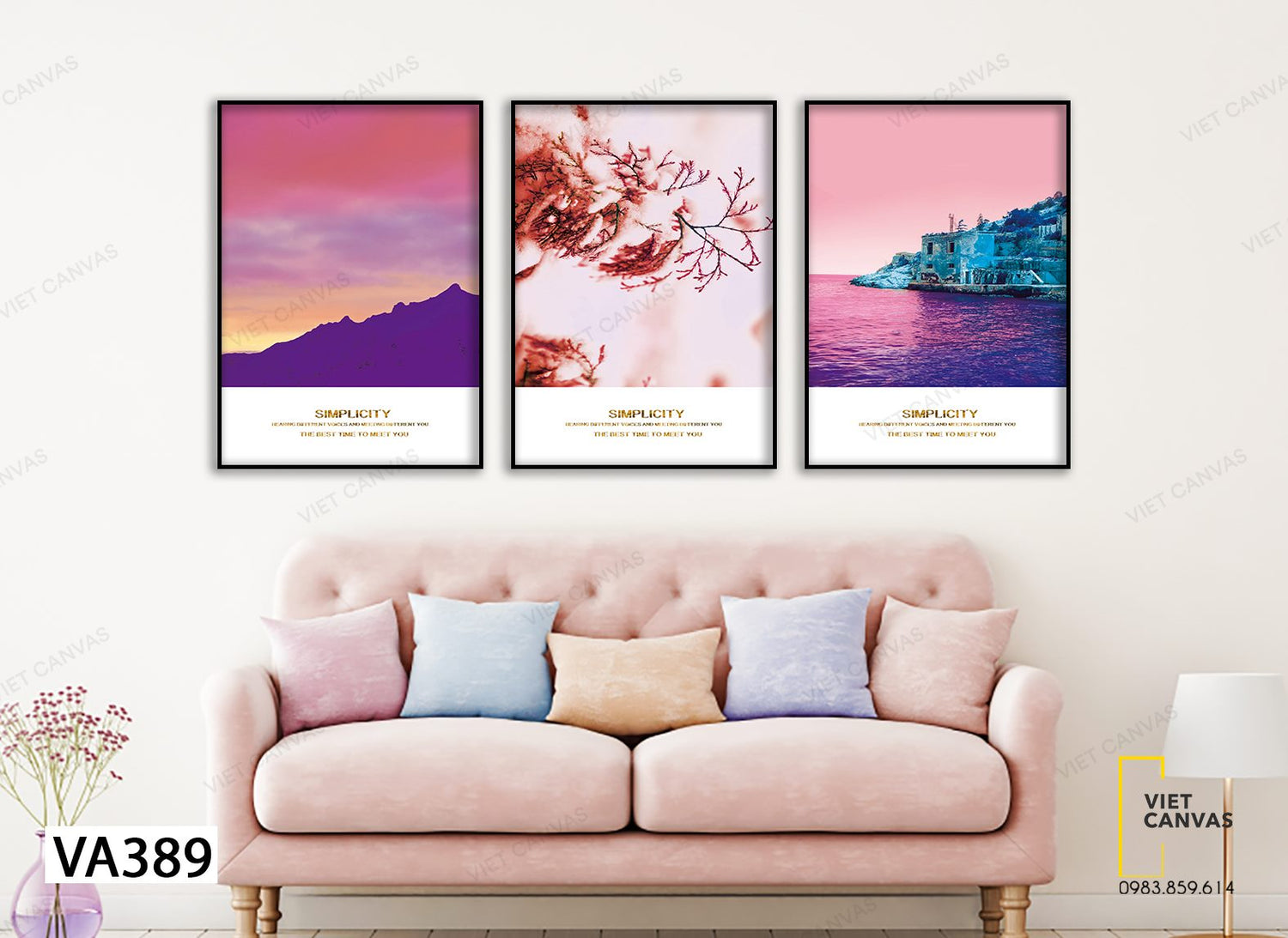 Bộ 3 Tranh Núi Rừng, Biển Cả Tông Màu Tím Mộng Mơ - VA389