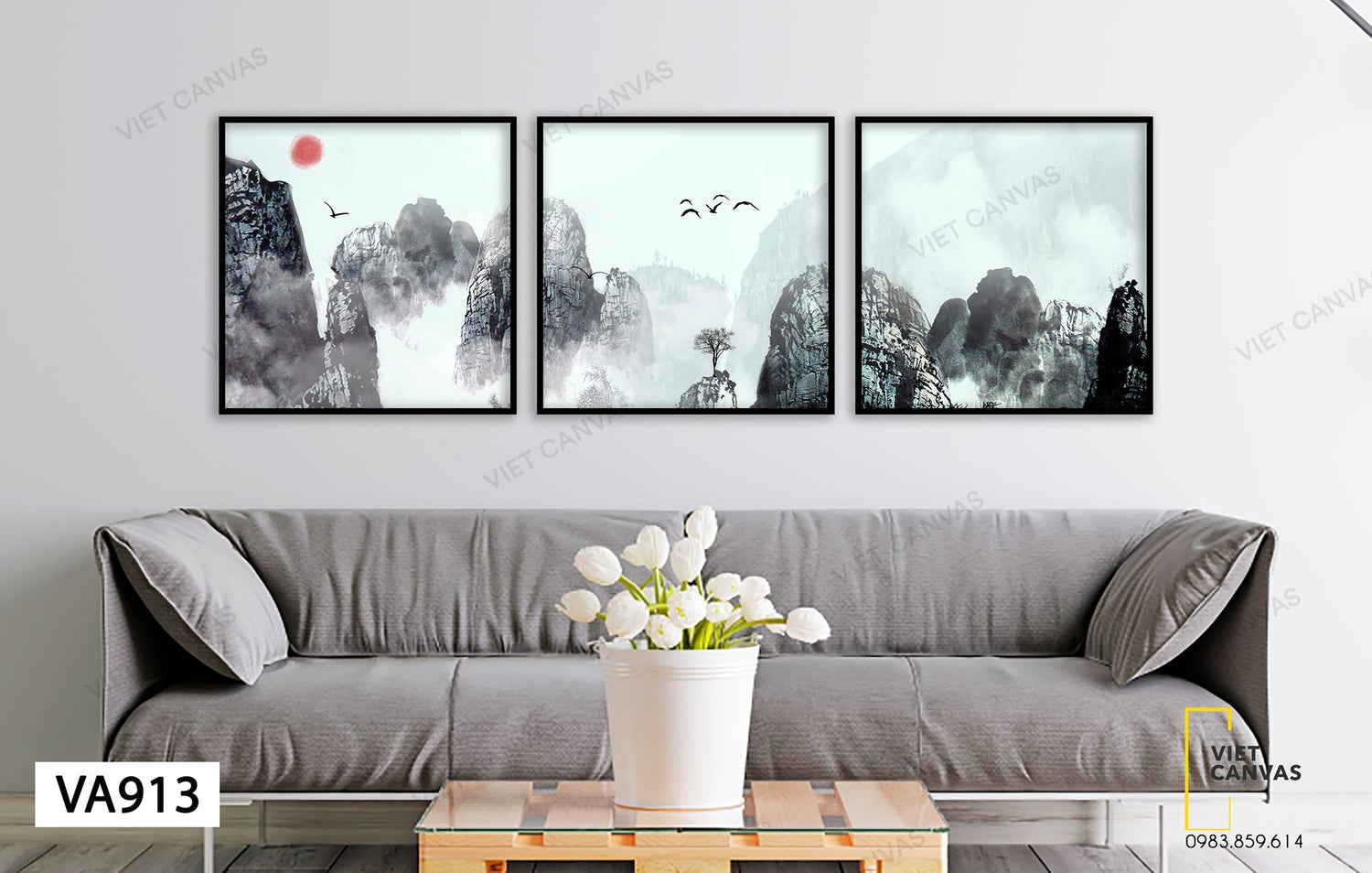 Bộ 3 Tranh Mây Khói Trên Đỉnh Núi - VA913