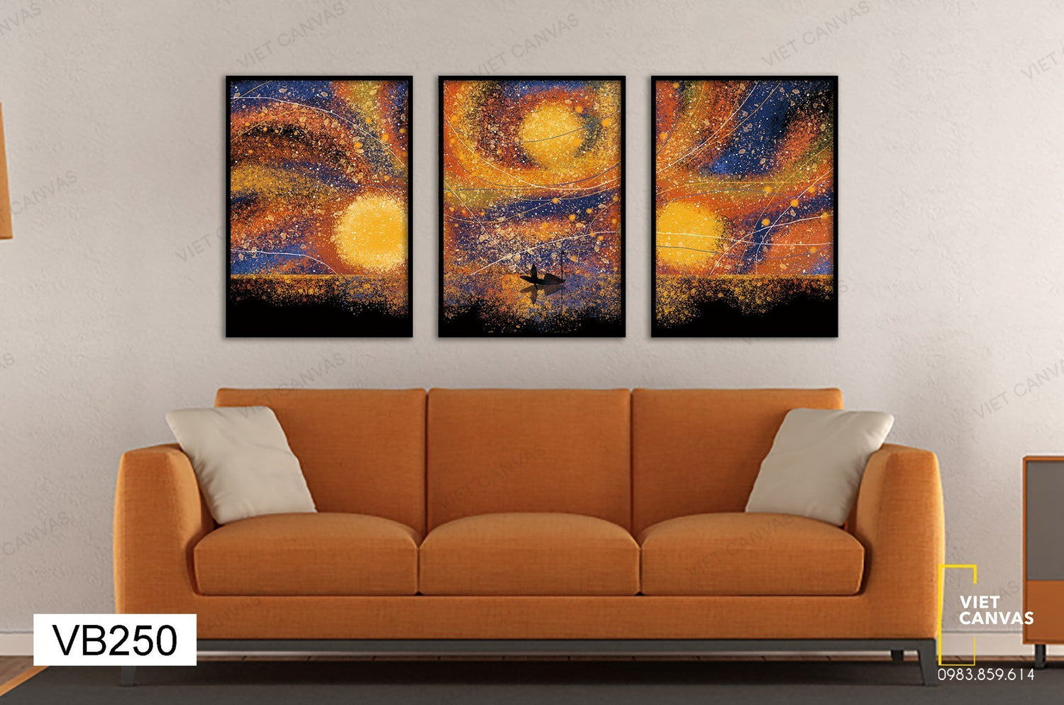 Bộ 3 Tranh Người Lái Đò Dưới Cảnh Huyền Diệu - VB250