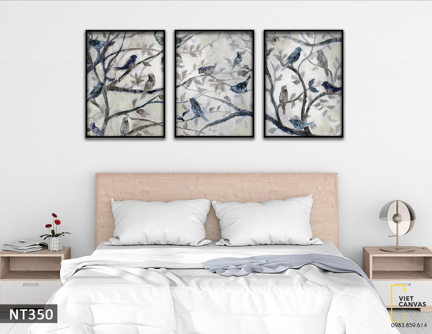Bộ 3 Tranh Những Chú Chim Chuyện Trò Trên Cành - NT350