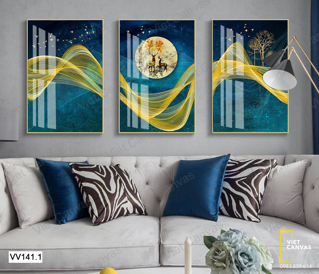 Bộ 3 Tranh Hươu Dưới Ánh Trăng - VV141.1