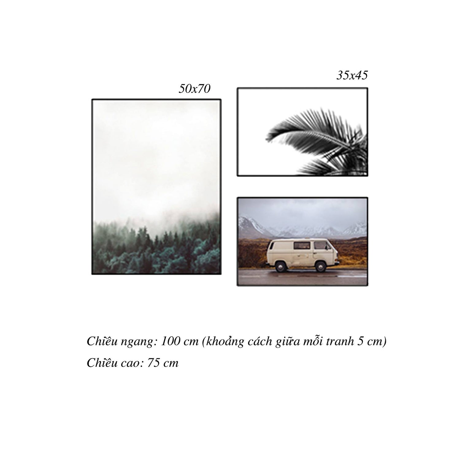 Bộ 3 Tranh Chiếc Xe, Rừng Cây Và Lá Cây - HD011
