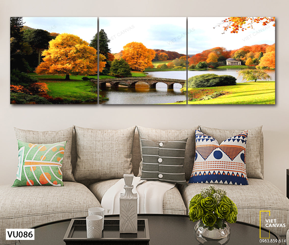 Bộ 3 Tranh Rừng Cây Dòng Sông Và Cây Cầu - VU086