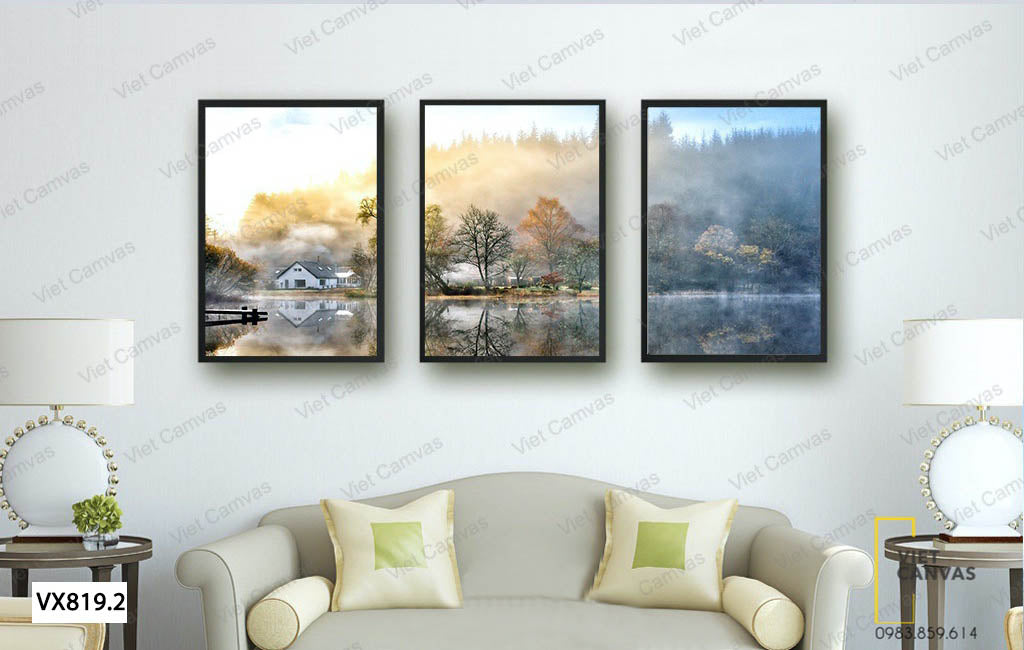 Bộ 3 Tranh Rừng Cây Và Hồ Nước - VX819.2
