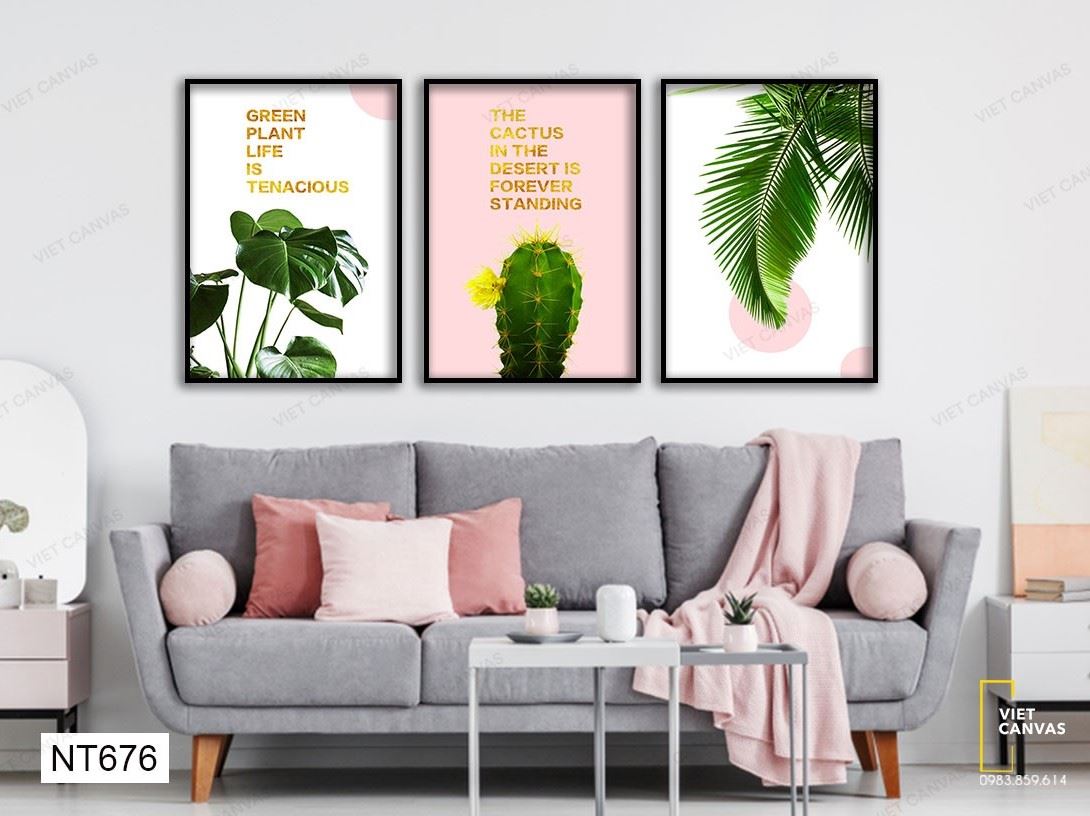 Bộ 3 Tranh Lá Cây Xanh Và Xương Rồng - NT676