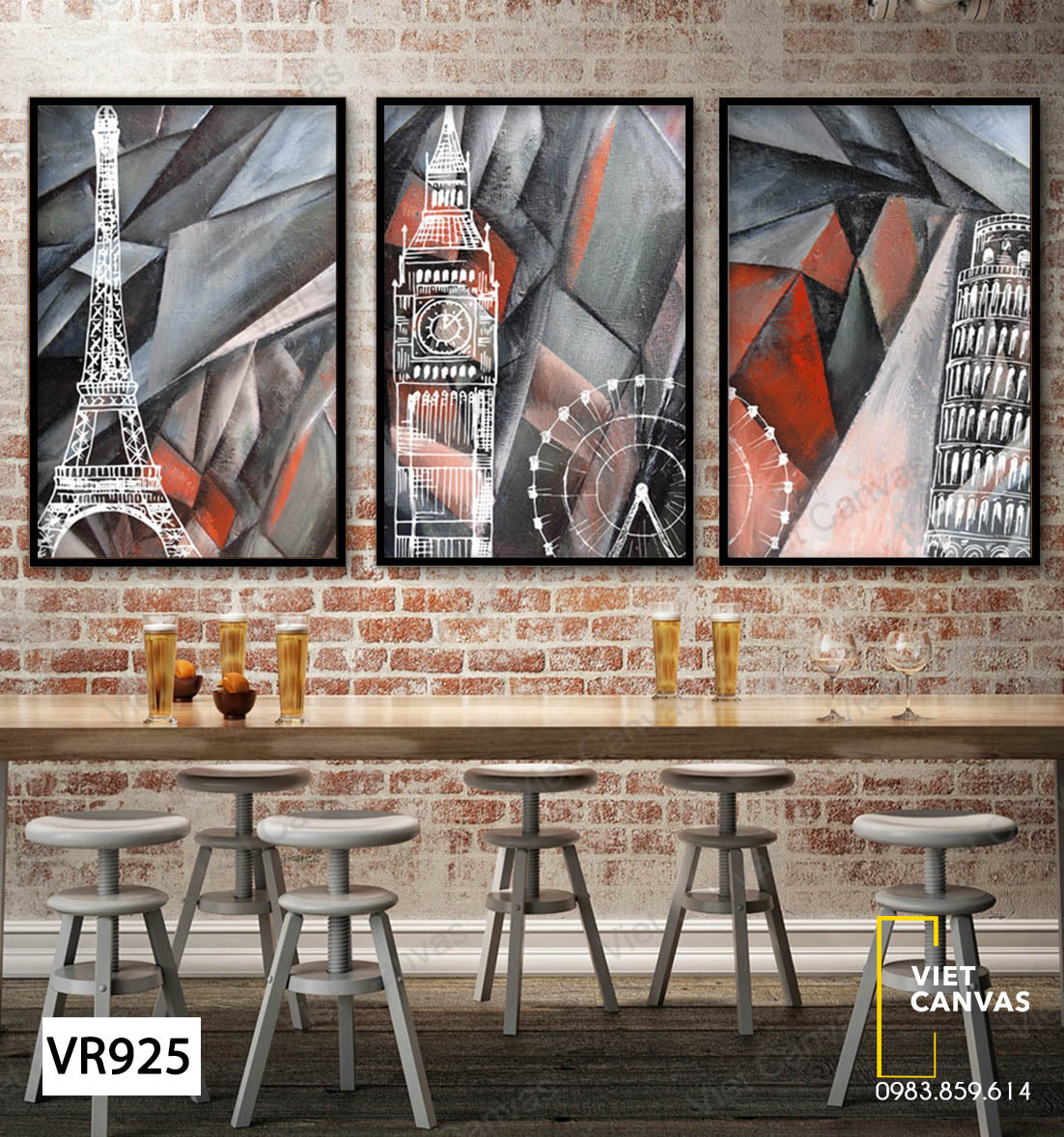 Bộ 3 Tranh Tháp Eiffel, Tòa Big Ben Và Tháp Nghiêng Pisa - VR925